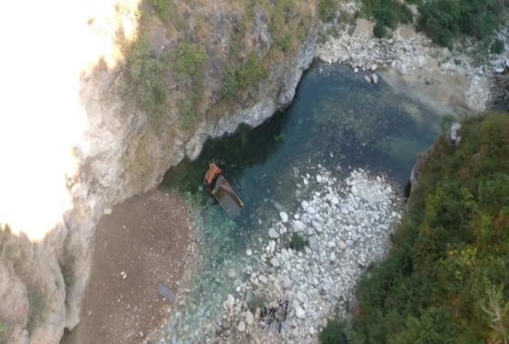 (हादसा) यहाँ नदी में गिरा डंपर, सवार दाे लाेगाें की घटना स्थल पर ही माैत