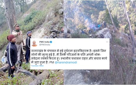 उत्तराखंड में एक दुर्घटना के कारण जान गंवाने वालों के परिजनों के लिए पीएमएनआरएफ की ओर से 2-2 लाख । और घायलों को 50,000 रुपये दिए जाने की घोषणा की।