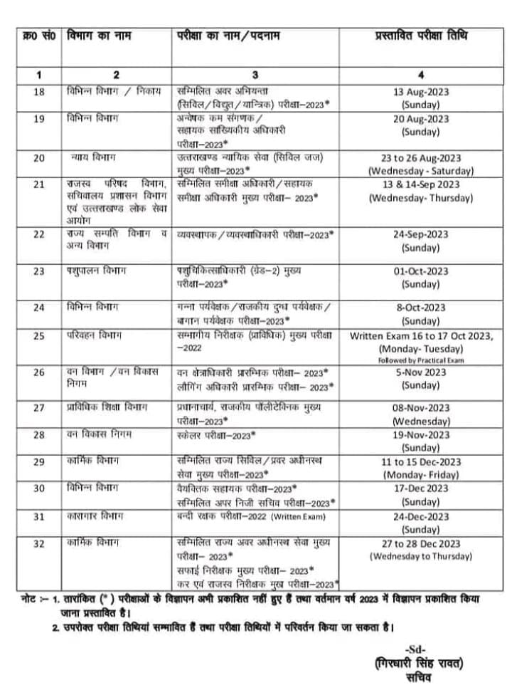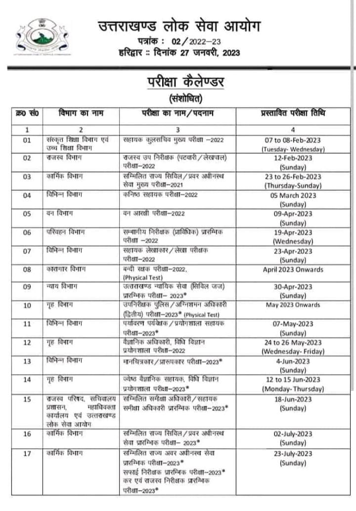 देहरादून – उत्तराखंड के सीएम धामी कड़क अंदाज में नजर क्या आए, तो 15 दिन से पहले ही “उत्तराखंड लोक सेवा आयोग” ने परीक्षा कैलेंडर घोषित कर दिया. जिसमें पूरे साल भर में कौनसी वैकेंसी निकाली जाएगी. इसके ऊपर लिस्ट भी जारी कर दी है, जिसके तहत कनिष्क विभाग, कारागार विभाग, विभिन्न विभाग, कार्मिक विभाग, वन विकास निगम, न्याय विभाग, पटवारी-लेखपाल जैसी भर्तियां शामिल है…. यदि लिस्ट नहीं देखी है तो तुरंत देखें—–