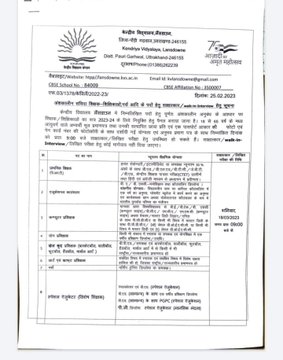 उत्तराखंड – क्या आप भी सरकारी स्कूल में टीचर बनना चाहते हैं, तो अब यह सपना आपका सच होने वाला है.. जी हां, आपको बता दें कि अभी हाल फिलाल में कई भर्तियां उत्तराखंड में हो रही है. जिसके चलते केवी विद्यालय श्रीनगर और लैंसडौन में भी कई पदों पर भर्तियां निकाली गई है. जिसमें आपको कोई परीक्षा नहीं देनी होगी केवल और केवल इंटरव्यू के आधार पर आपको चयनित किया जाएगा.